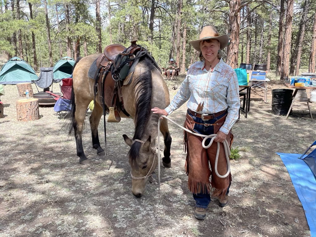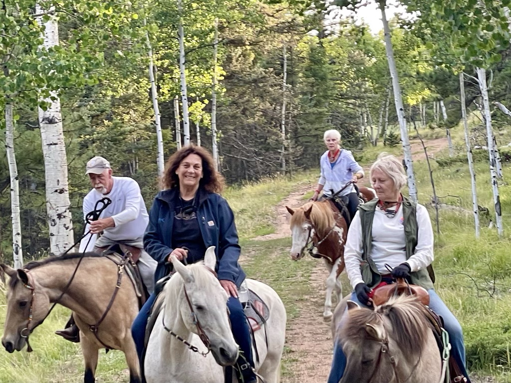 My BFF and I signed up for the experienced rider horseback/camping adventure and it exceeded my expectations. The facilities that Jim and Jill packed in to the campsite were great. We could stand and easily move around in our large tent. There were comfortable cots and an appropriate tent latrine that was easy to reach. Jim and Jill had plastic down on the ground where they erected the tent and each night we would wake up as we could clearly hear the Sasquatch walking up to and around the tent on the plastic – further supported by footprints and other signs in the mornings. The food was also very good and plenty of it. The horses were well suited to the riders, sure footed and for me, really added to the Rocky Mountain experience with the Sasquatch (and perhaps alien?) experiences several of us enjoyed. Thank you for a tremendous experience and great time hanging out in the Rockies.